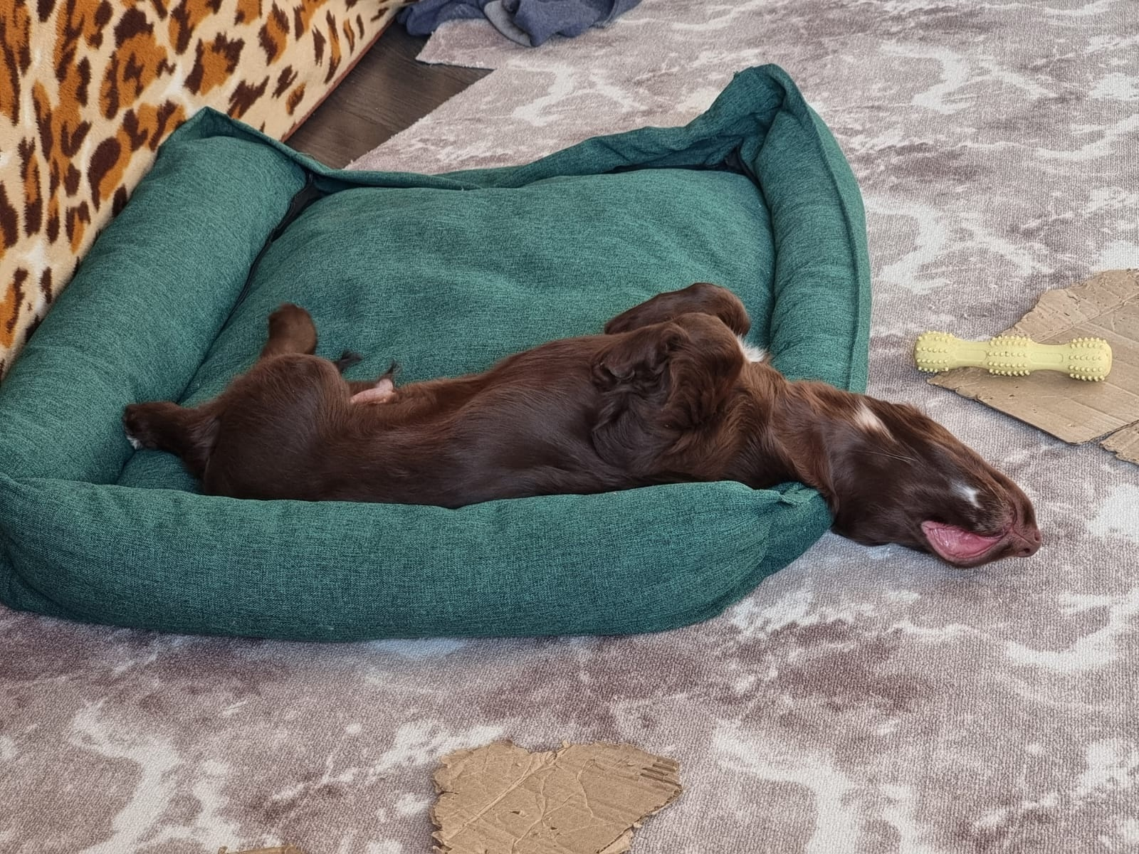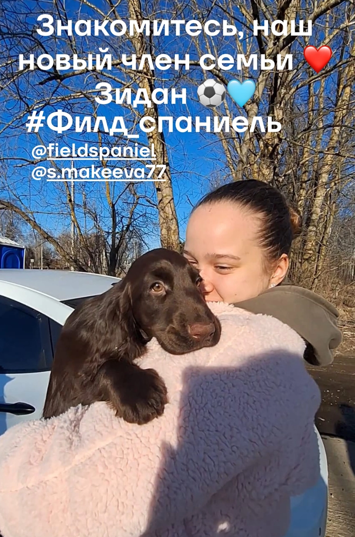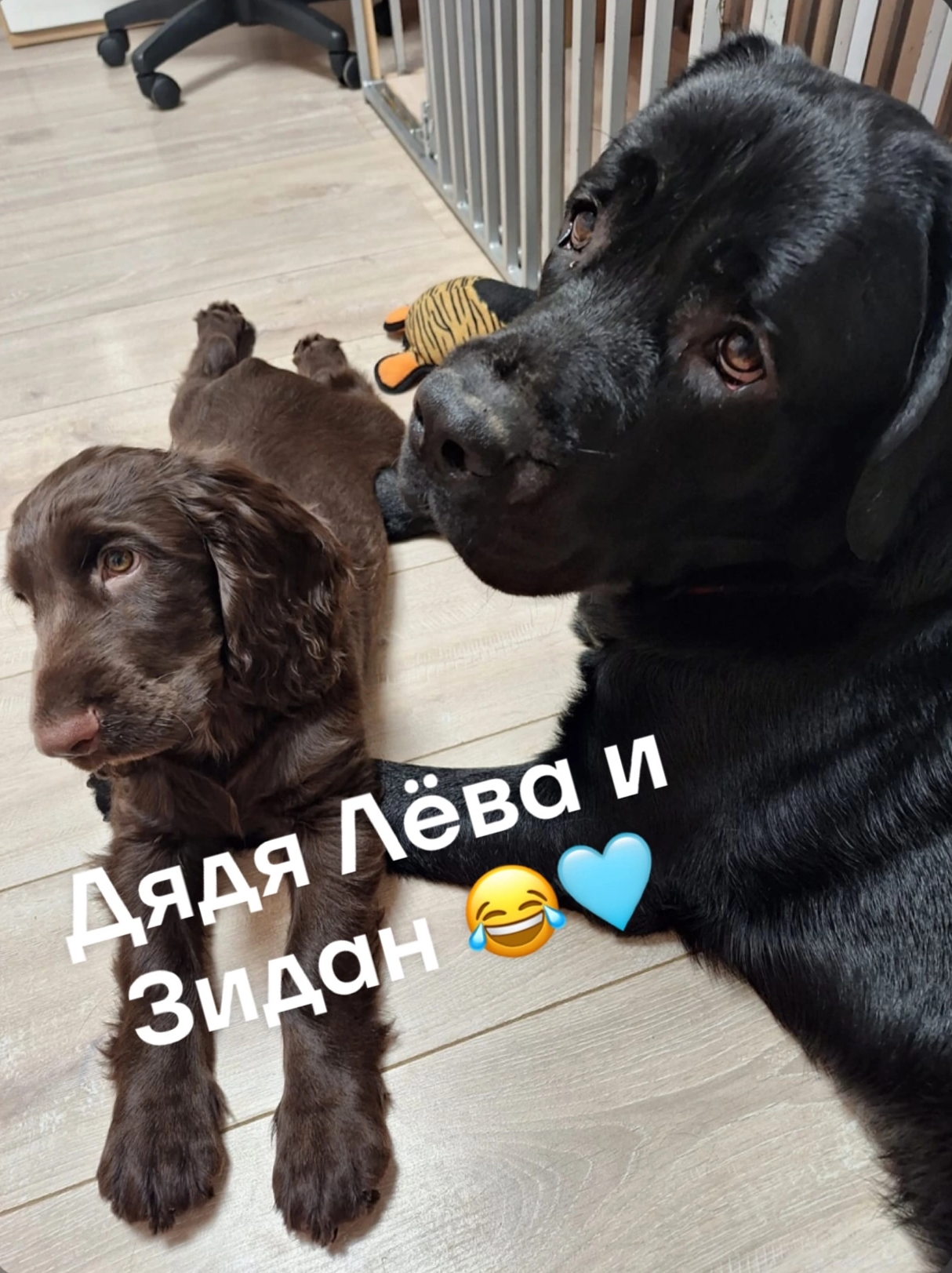 По домашнему - Зюзя. Зидан быстро освоился в новом дома, и у него есть личный лабрадор Лева. Малыш уже начал свою выставочную карьеру, дебютировав во Владимире в классе Бэби и продолжает покорять ринги в классе Щенков. Путешествует и живет жизнь счастливого филда.
