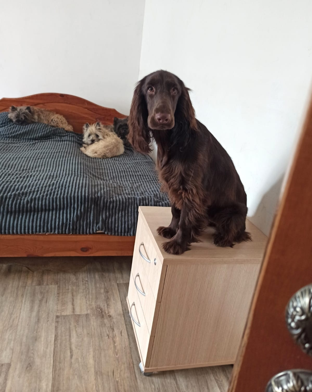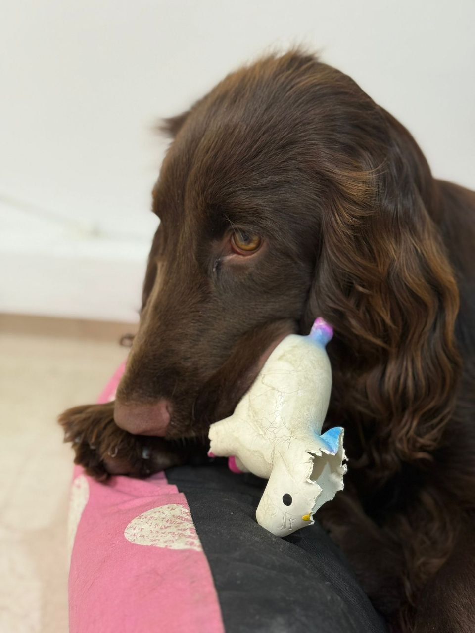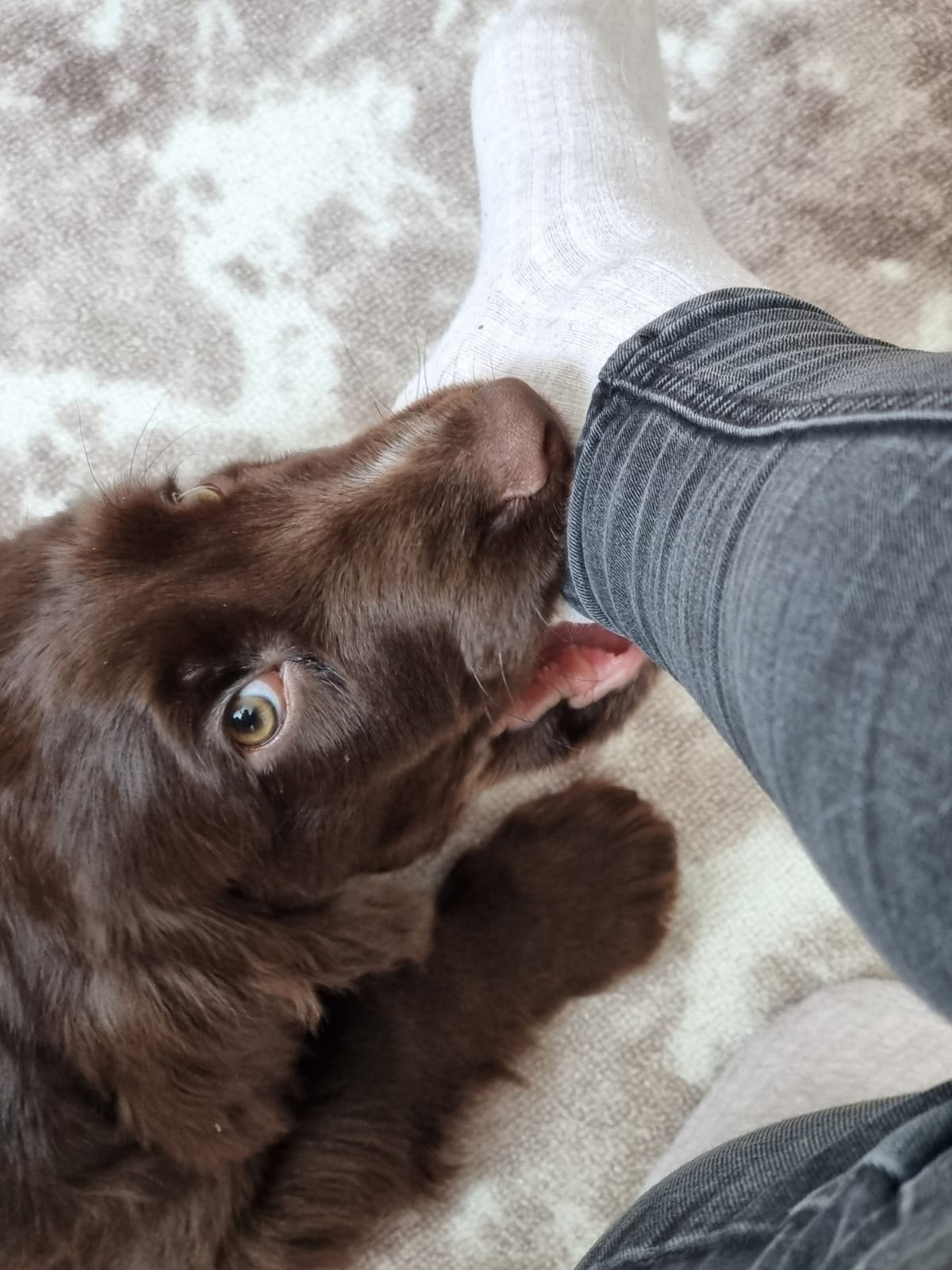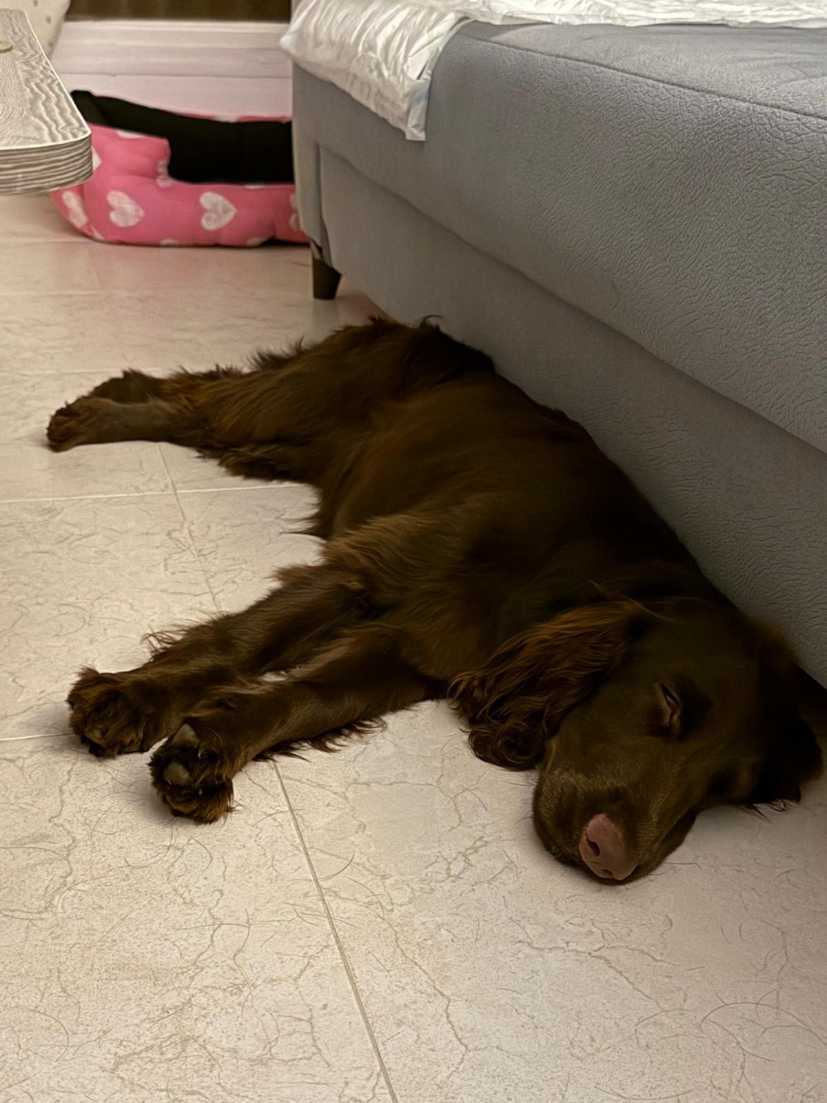 По домашнему - Зюзя. Зидан быстро освоился в новом дома, и у него есть личный лабрадор Лева. Малыш уже начал свою выставочную карьеру, дебютировав во Владимире в классе Бэби и продолжает покорять ринги в классе Щенков. Путешествует и живет жизнь счастливого филда.