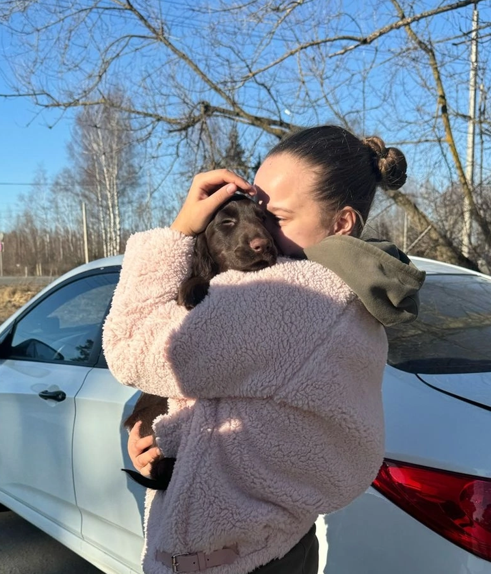 Когда Оля позвонила мне с вопросом о приобретении щенка, она хотела девочку... Дома я разговариваю обычно по громкой связи. И слушая её рассказ о том, что она планирует ходить в горы, ездить на велосипеде, проводить время на Волге, я смотрела на Кельта. Кельт сидел и внимательно слушал Олин голос. Его хвостик подрагивал от каждого слова из телефона. Тогда я решила предложить его. И Оля согласилась. А когда она за ним приехала, щенок совершено спокойно пошёл к ней на руки.
