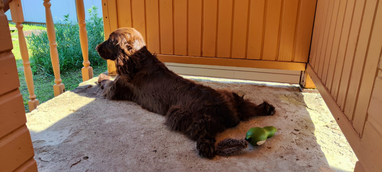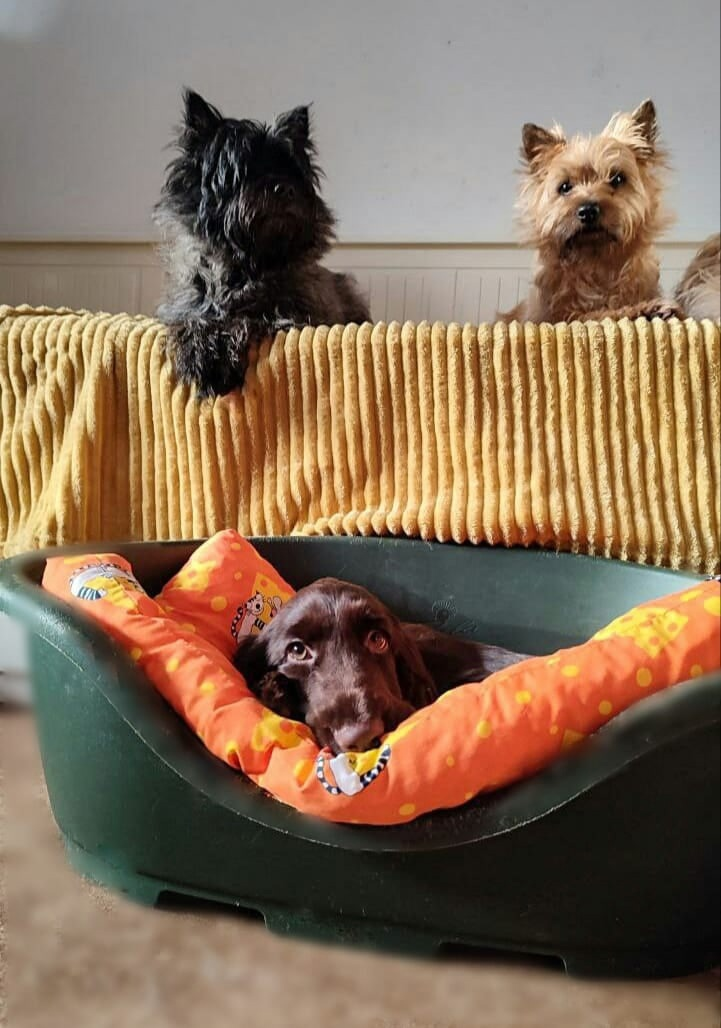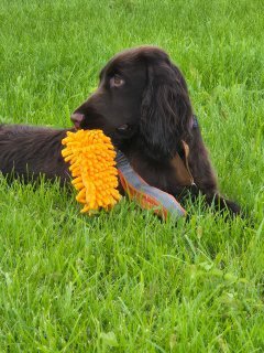 Нежная, ласковая и такая хитрая и заводная девчонка! Поживает весело в большой семье с кернами. Любит прогулки и походы по лесам и полям со своим папой.
